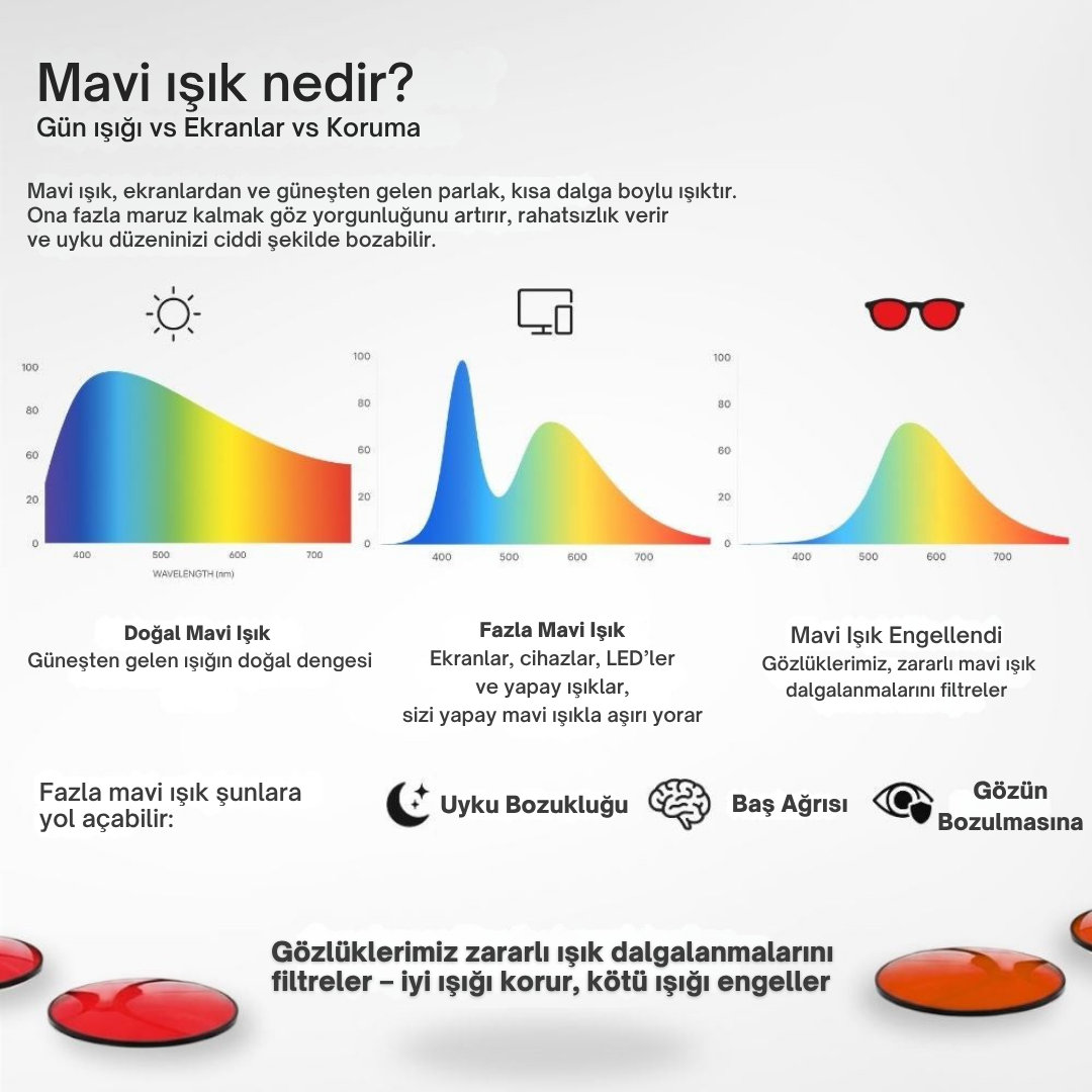 Evet, bu gözlükler zararlı mavi ve yeşil ışığı engelleyerek dijital göz yorgunluğunu azaltır. Ekran başında geçirilen süreyi daha konforlu hale getirir; yorgunluğu, baş ağrılarını ve bulanık görüşü en aza indirir.